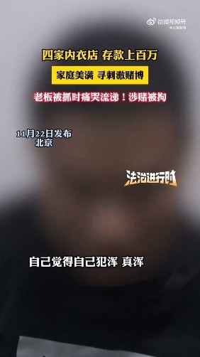 据报道恒瑞行配资,北京一老板开四家内衣店,有上百万存款,家庭美满,却因为觉得生活没意思,为寻刺激赌博,被抓时痛哭流涕!