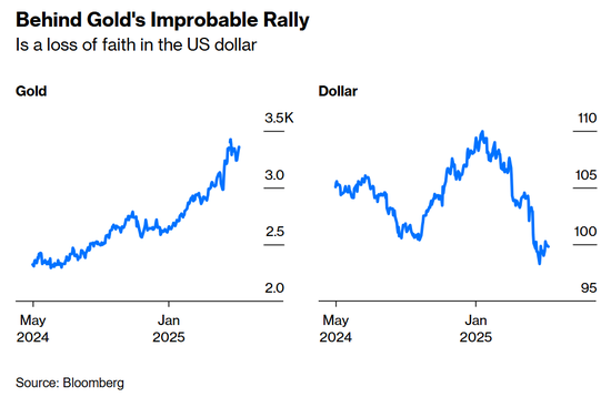 事实上,亚洲的抛售压力很大。彭博社最近对18家中国出口商进行的一项调查显示,他们对持有美元感到担忧,并已将持有的美元兑换成人民币。黄金今年惊人的上涨,尤其是在亚洲交易时段的飙升,进一步显示了人们对美元的紧张情绪。